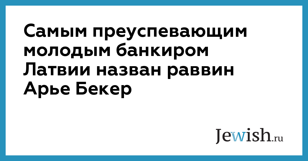 Самым преуспевающим молодым банкиром Латвии назван раввин Арье Бекер