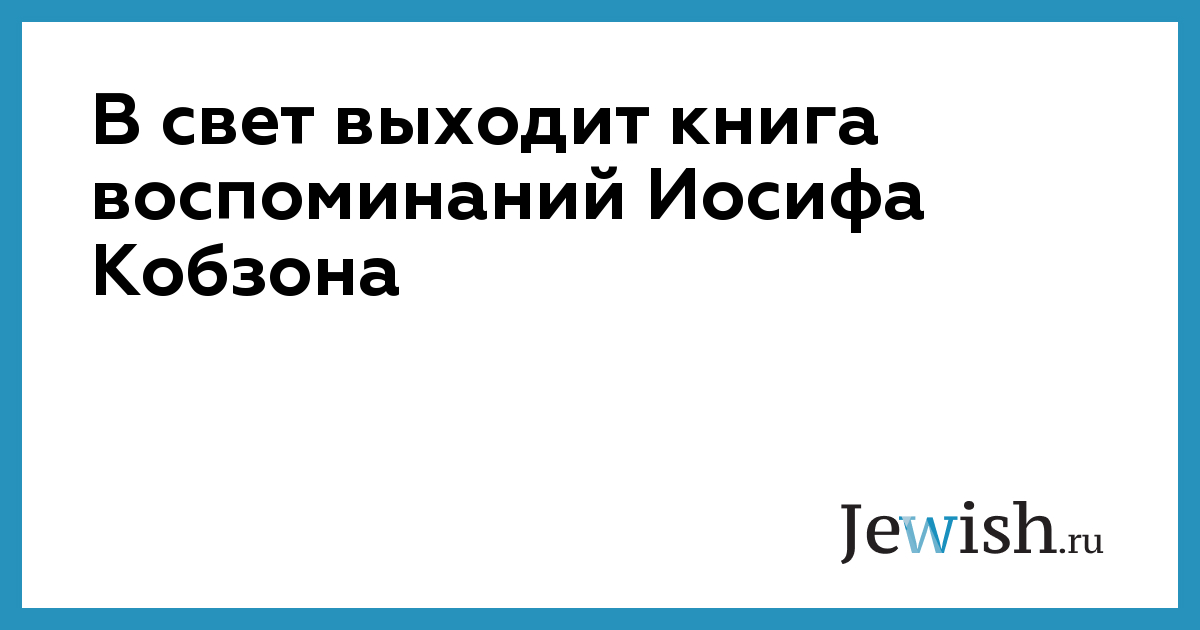 В свет выходит книга воспоминаний Иосифа Кобзона