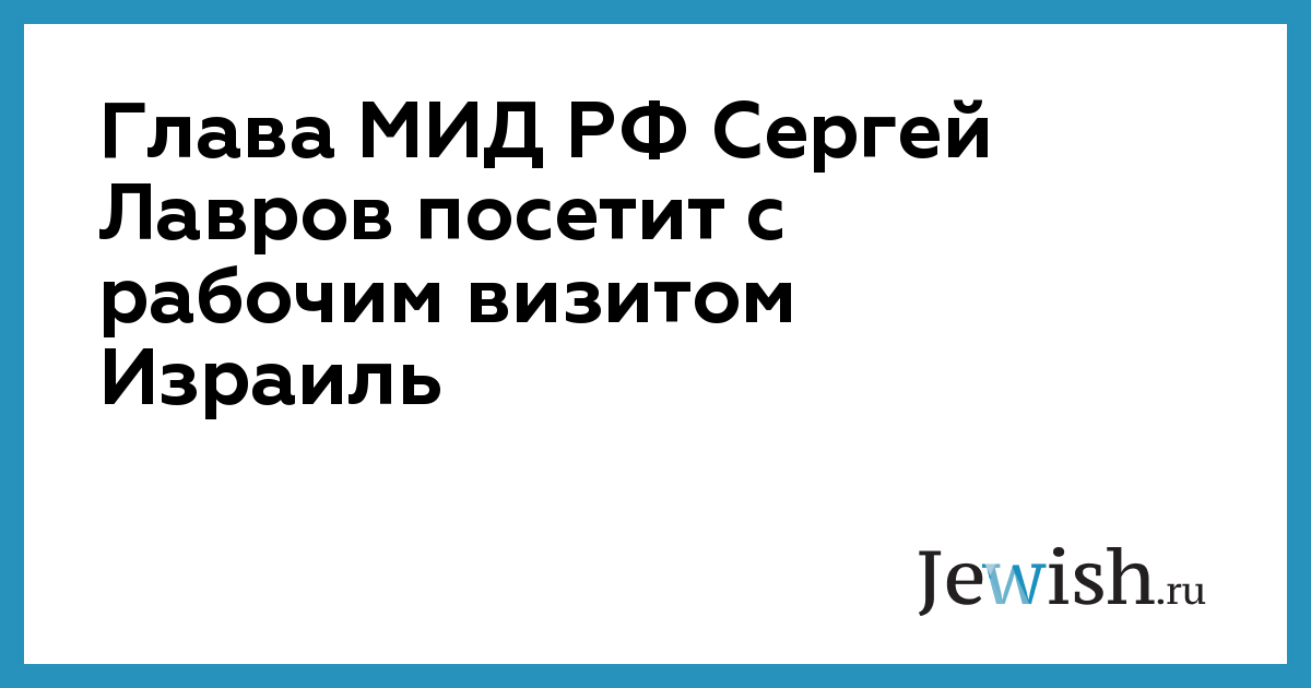 Глава МИД РФ Сергей Лавров посетит с рабочим визитом Израиль