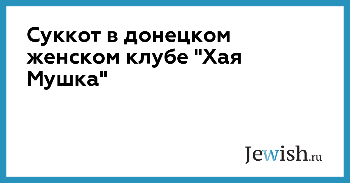 Более 80 женщин — участниц клуба "Хая-Мушка" собрались в шалаше — сукке Донецкой синагоги. Здесь все они исполнили заповеди "Четырех растений" и произнесли благословение "Леишев ба сукка" после того, как отведали вкусную выпечку, приготовленную кошерным кафе "Бейт-Шмуэль". Веселье праздника продолжилось в одном из великолепных залов этого кафе. Под руководством ведущей встречи Юлии Вириной и музыкального руководителя Светланы Ворониной все вместе женщины разучили песню о Суккоте, сочиненную инициативной группой клуба.