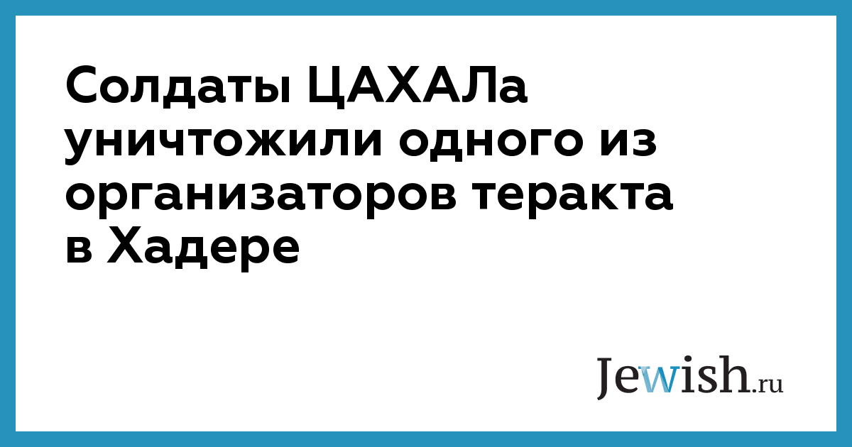 Солдаты ЦАХАЛа уничтожили одного из организаторов теракта в Хадере