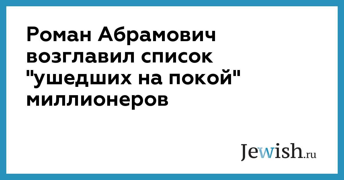 Роман Абрамович возглавил список "ушедших на покой" миллионеров