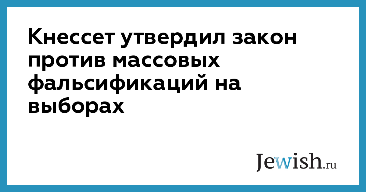 Кнессет Израиля в третьем чтении утвердил законопроект, призванный предотвратить массовые фальсификации во время выборов. Законопроект разрабатывали с учетом опыта прошлогодних выборов президента Украины, передает «Немецкая волна».