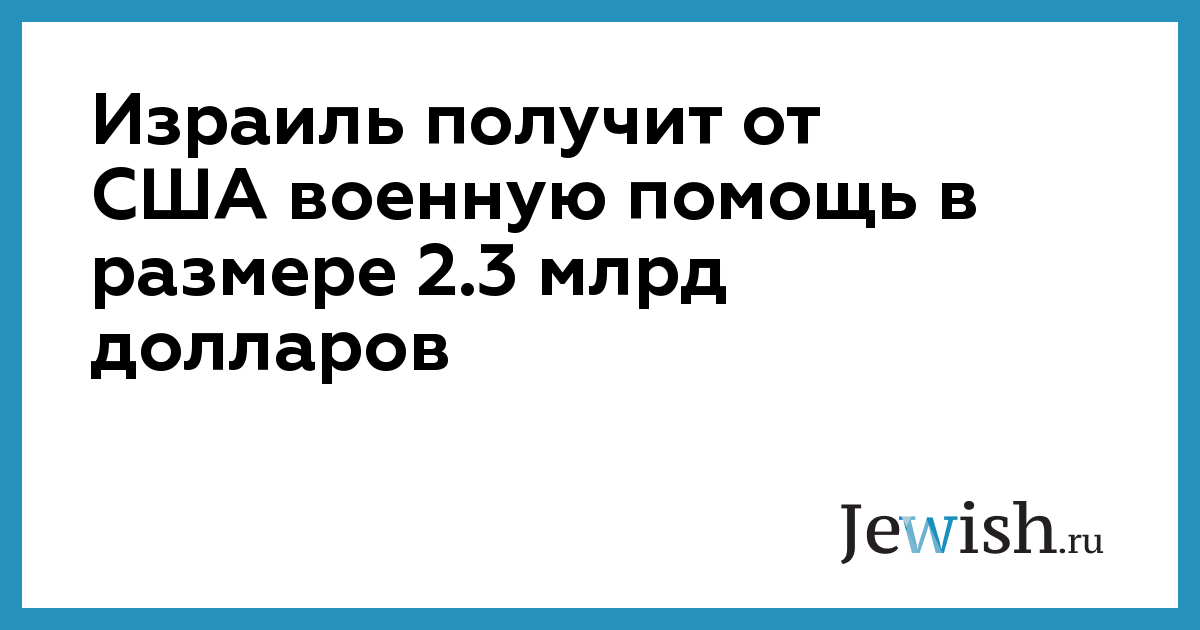 Израиль получит от США военную помощь в размере 2.3 млрд долларов