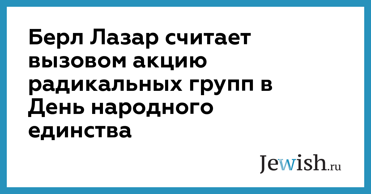 Главный раввин России Берл Лазар назвал вызовом власти акцию, которую радикальные группы приурочили ко Дню народного единства.