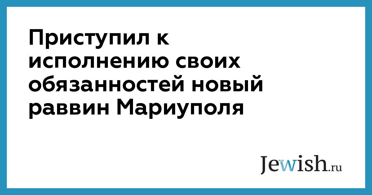 Приступил к исполнению своих обязанностей новый раввин Мариуполя