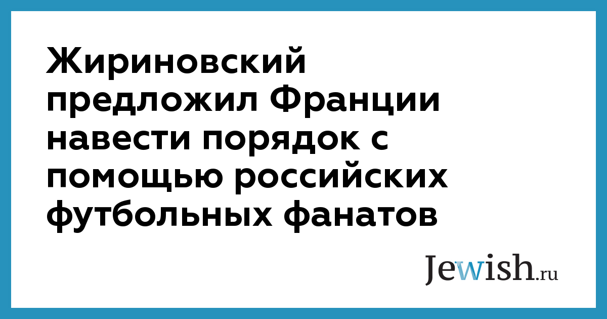 Вице-спикер Госдумы Владимир Жириновский предложил властям Франции помочь в обеспечении порядка с помощью российских футбольных фанатов и активистов ЛДПР.