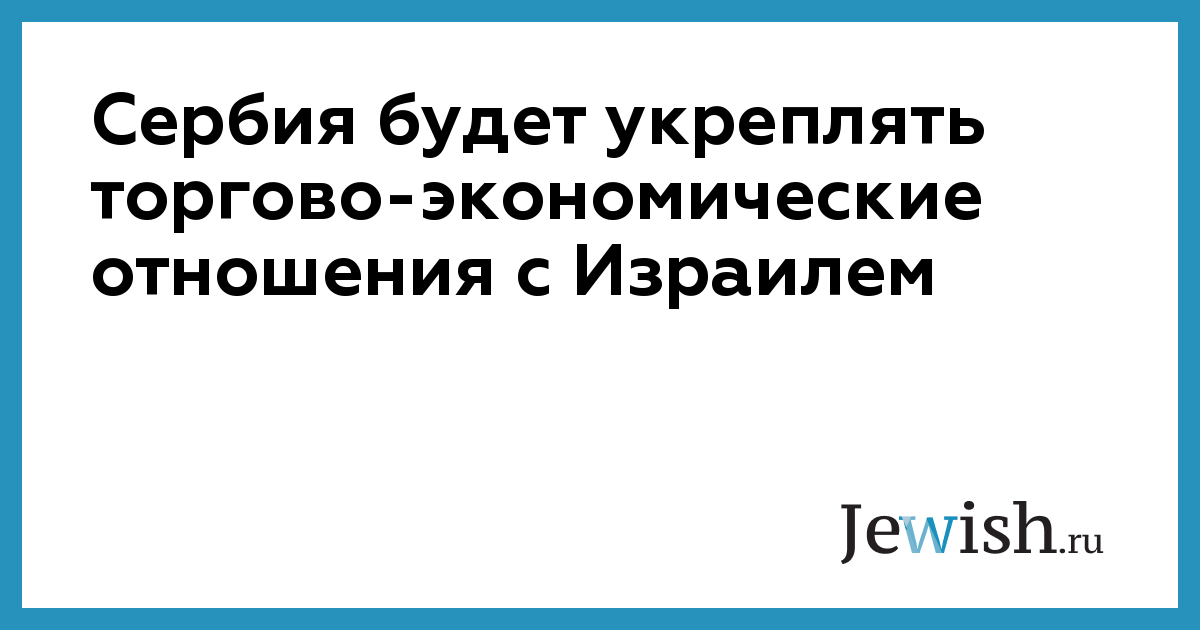 Сербия будет укреплять торгово-экономические отношения с Израилем