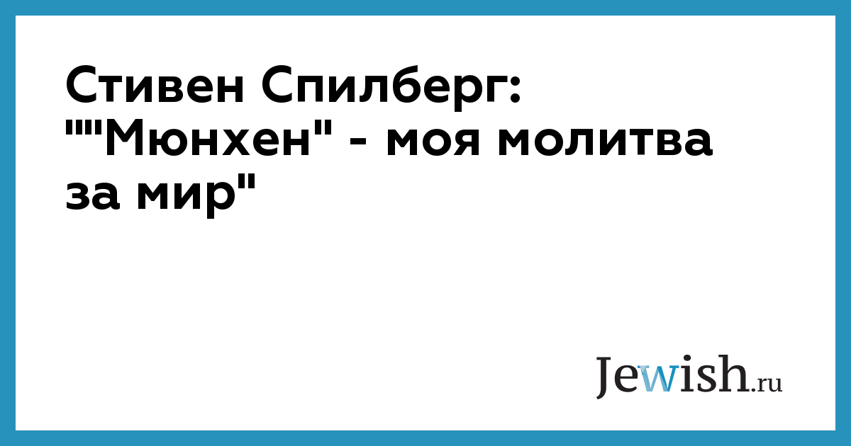 Новый фильм Стивена Спилберга «Мюнхен», рассказывающий о возмездии за убийство палестинскими террористами израильских спортсменов на Олимпиаде в Мюнхене в 1972 году — «молитва за мир». Так охарактеризовал свое очередное детище сам американский кинорежиссер в интервью журналу «Time» в воскресенье 4 декабря.