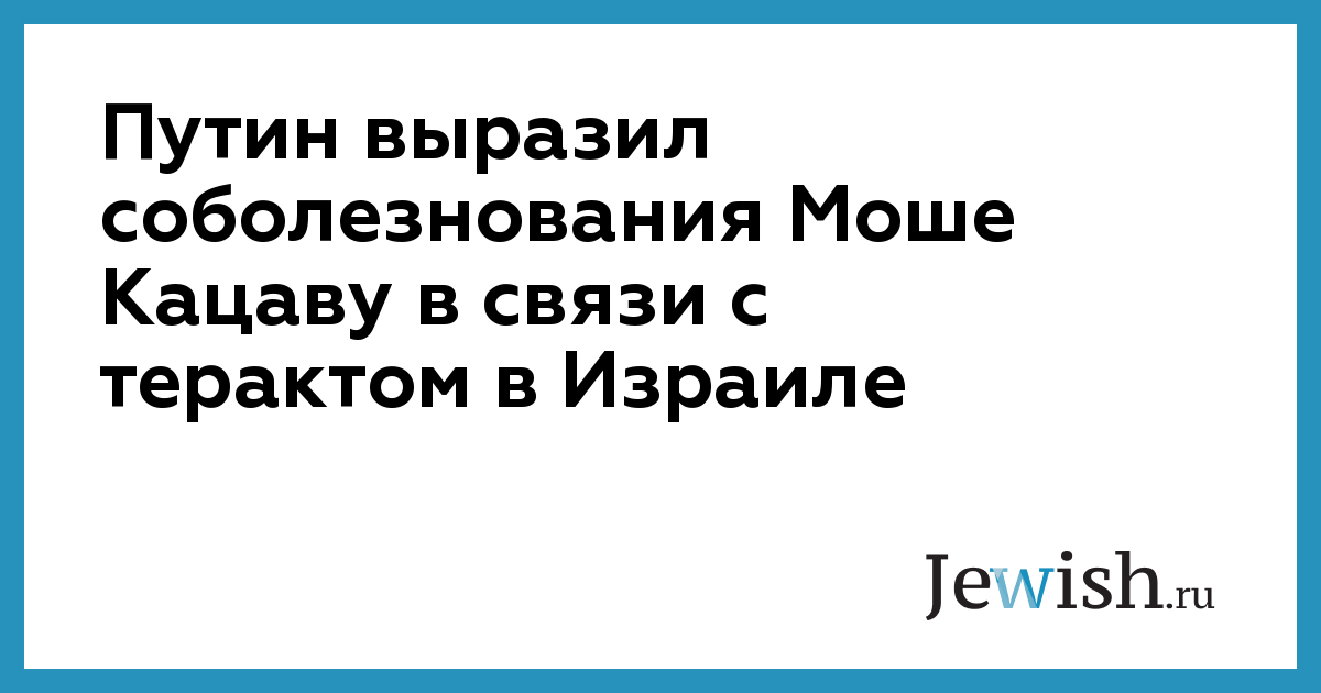 Президент РФ Владимир Путин выразил глубокие соболезнования президенту Моше Кацаву и народу Израиля в связи с произошедшим сегодня в Израиле терактом.