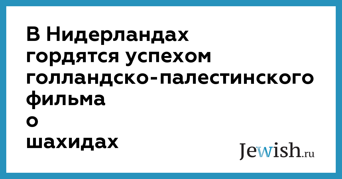 В Нидерландах гордятся успехом голландско-палестинского фильма о шахидах