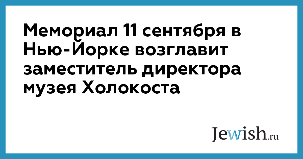 Заместитель директора американского музея-мемориала Холокоста в Вашингтоне возглавит Мемориал памяти жертв терактов во Всемирном торговом центре 26 февраля 1993-го и 11 сентября 2001 года, сообщает Associated Press.