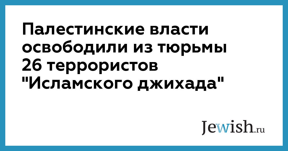 Палестинская администрация освобождает из тюрьмы в Иерихоне 26 террористов из группировки "Исламский джихад".