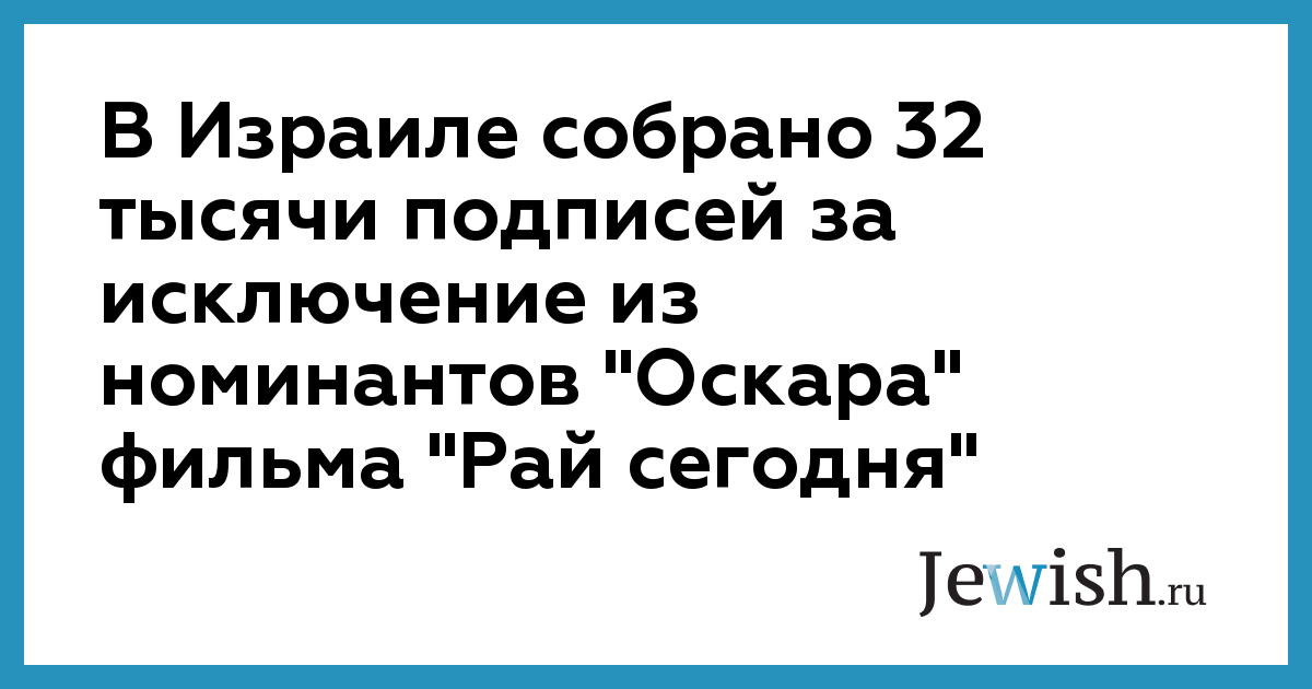 В Израиле собрано более 32 тысяч подписей под призывом исключить из числа претендентов на премию "Оскар" фильм о палестинцах-смертниках "Рай сегодня", который выдвинут на соискание премии Американской Киноакадемии в номинации "Лучший иностранный фильм", сообщает Ha'aretz.