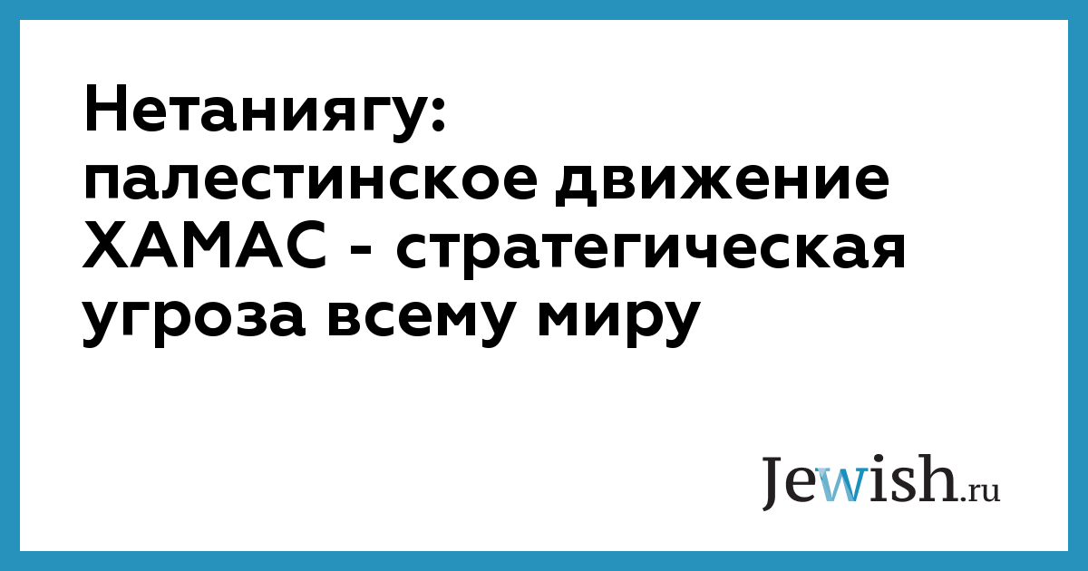 Нетаниягу: палестинское движение ХАМАС — стратегическая угроза всему миру