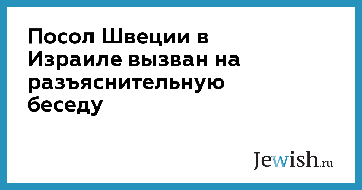Посол Швеции в Израиле вызван на разъяснительную беседу