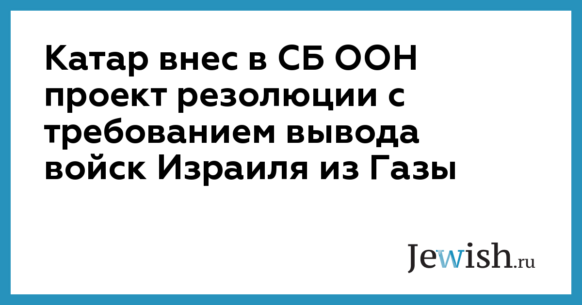 От имени группы арабских стран Катар внес в четверг на рассмотрение Совета Безопасности ООН проект резолюции с требованием незамедлительного вывода израильских войск из сектора Газа.