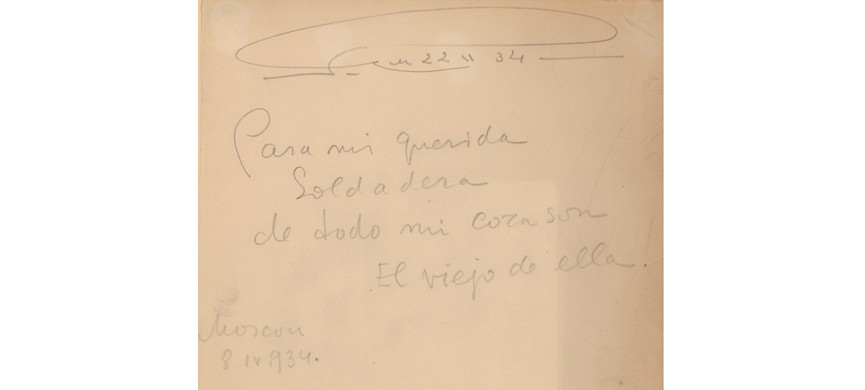 Острая необходимость друг в друге стала очевидна во время затяжной командировки Эйзенштейна по Европе, США и Мексике с августа 1929-го по май 1932-го. Переписка между ними тогда не прерывалась ни на день. Всего в эпистолярном наследии режиссера 180 писем Аташевой – больше он написал только своей матери! И до сих пор все эти письма – кладезь ценной информации для биографов Эйзенштейна. По приезде обратно в советскую Россию Сергей Михайлович подарил Перле Моисеевне альбом художника Хосе Клементе Ороско о гражданской войне в Мексике. На большинстве картин есть soldadera – женщина-солдат, сопровождающая своего возлюбленного в боях. Надписав альбом, Сергей Михайлович определил свое отношение к Пере Аташевой: «Моей дорогой солдадере от всего сердца. Ее старик. Москва 8 IV 1934». Через несколько месяцев они оформили брак, но вместе так никогда не жили, лишь изредка появляясь вдвоем в общественных местах и обращаясь друг к другу исключительно на «вы».