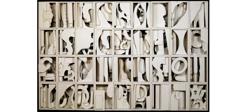 На Рождество того года к ней пришел друг с ящиком ликера. Рассмотрев ящик, Луиза поняла, что он может стать частью скульптуры. Она наполнила его деревянными предметами, покрасила в черный, а сверху поставила еще ящик. И еще. В итоге получился сложный рельеф – ни на что не похожий и одновременно напоминающий резьбу на гробницах индейцев древней Мексики.