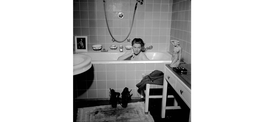 Известная на весь мир фотография «Ли Миллер в ванной Гитлера» сделана американским фотографом Дэвидом Шерманом, к тому моменту уже успевшим спастись с торпедированного немцами корабля и побывать в немецком плену. Фото постановочное, но лишь ради усиления основного сообщения. Снимок сделан в Мюнхене на Prinzregentenplatz, 16 в девятикомнатной квартире Гитлера 30 апреля 1945 года. Солдатские ботинки возле ванной, которые так отчаянно заостряют хрупкость женской фигуры на фото, перепачканы пылью и золой освобожденного Дахау, где фотографы провели первую половину того дня. Гитлер и Ева Браун в это время находились в бункере в Берлине. Во второй половине дня камердинер Гитлера Хайнц Линге услышал выстрел и зашёл в апартаменты фюрера. Он обнаружил два мертвых тела на диване, Ева Браун погибла от отравления цианидом, Гитлер – от огнестрельного ранения. Ни Миллер, ни Шерман об этом, разумеется, не знали. Шерману принадлежит еще один прекрасный снимок почти обнаженной Ли, стоящей на ветру. Он назвал его «Портрет в камуфляже» и посвятил хрупкости этого мира.