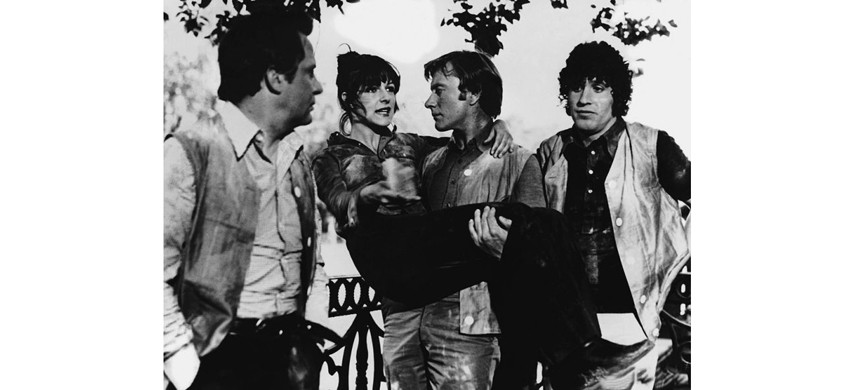 Эльдар Рязанов любил использовать в кино каскадёрские трюки – чтобы подчеркнуть образ или интригу, сгустить динамику и усилить накал страстей между героями. В фильме «Человек ниоткуда», снятом в 1961 году, главный герой в лице Сергея Юрского прыгал с высокого здания к любимой девушке, хватался голыми руками за оголённый кабель, царапался и ушибался, но выходил отовсюду живым. И всё это ради заострения повествования.