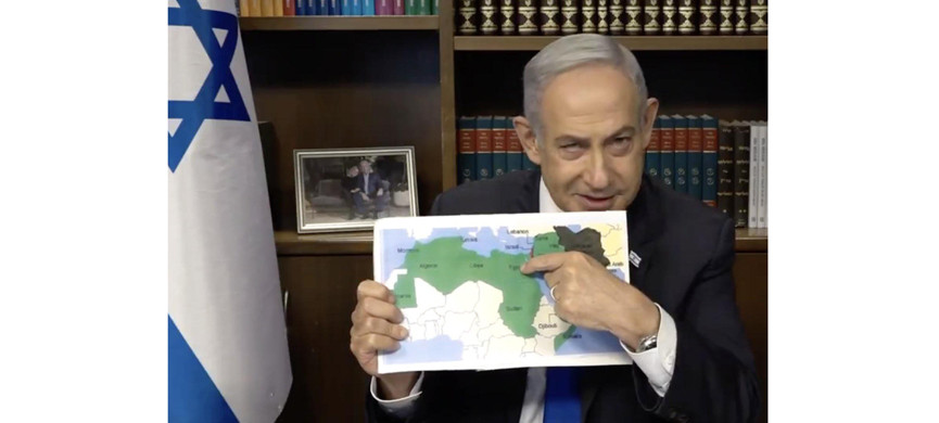 Премьер-министр Израиля Биньямин Нетаньяху с картой, где от Марокко отрезана часть Западной Сахары