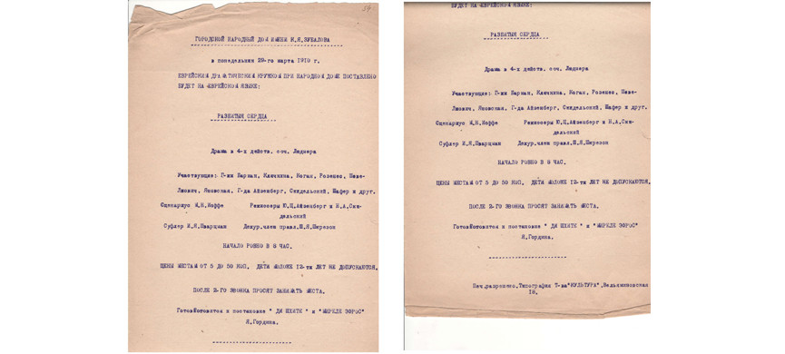 Менее чем через год на стене объявлений появилась скромная афиша: «16 марта 1910 года состоится официальное открытие Еврейской секции музыкально-мелодраматического искусства при Народном доме Зубалашвили (Зубаловых)». Открытию евсекции предшествовало создание в Тбилиси Общества еврейской музыки и литературы – именно его активисты организовали драмкружок при Народном доме Зубалашвили.