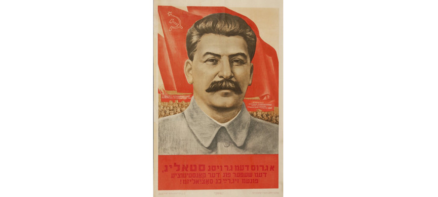 Этот режим тем временем набирал обороты. Ближе к 40-м евреи с плакатов исчезли. Временами еще встречается идиш, но только на фоне канонического изображения вождя. И даже надпись на идише уже просто стандартно гласит: «Привет великому Сталину, гаранту конституции победившего социализма!». Еврейских советских плакатов, созданных после 1945 года, нет. И это тоже страшный и молчаливый след истории. С одной стороны, нацисты уничтожили тех, к кому они могли бы быть обращены. С другой, юдофобской стала и государственная политика СССР.