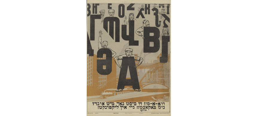 Призывали еврейское население с помощью плакатов на идише и повышать общую грамотность. В 1924 году Центральное издательство народов СССР стало издавать литературу и пропагандистские материалы на 50 национальных языках. Вот один из характерных плакатов, надпись на котором на идише гласит: «Что-о-о? Вы тоже с нами, ничего не зная?! Бегом на ликпункт!» Ликпункт – это пункт ликвидации неграмотности.