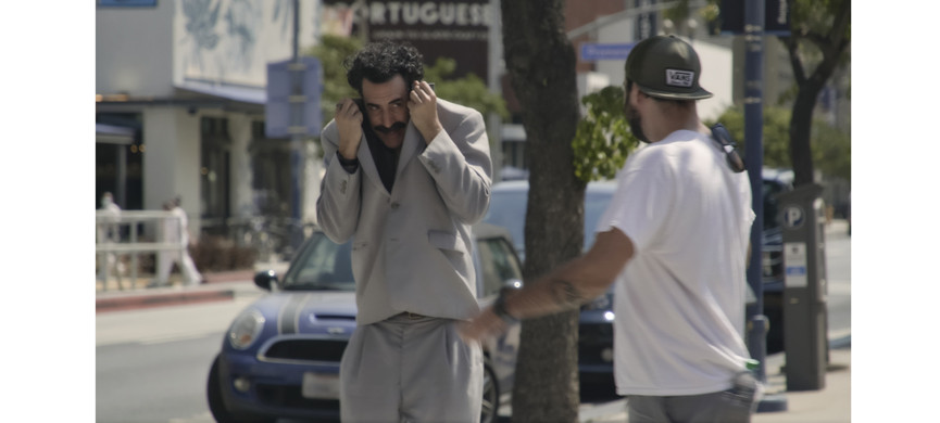 Что касается остальных появляющихся в фильме реальных людей, то это «обычные», скажем так, люди. Хотя нет, постойте, в «Борате-2» есть очень смешной момент с Форрестом Гампом, то есть Томом Хэнксом! А еще – просто удивительно трогательная сцена в синагоге со старенькой Джудит Дим Эванс, пережившей Холокост. Борат там перед ней – с пейсами, в шутовском костюме, собравшем все стереотипы о евреях: у него огромный, как у Пиноккио, накладной нос, а за спиной виднеются крылья летучей мыши. Он шарахается от женщины, узнав, что она еврейка, она же ласково его обнимает и целует, демонстрируя, что евреи не опасны. Она же сообщает ему, что Холокост всё-таки был, чему Борат несказанно рад – в его родном «Казахстане» День Холокоста – праздничный и весёлый.