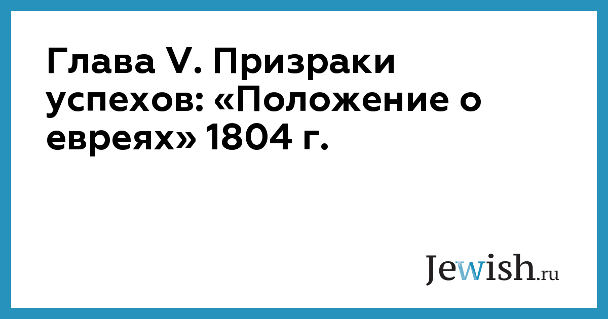 Царь Александр I вступил на престол в марте 1801 г., после убийства императора Павла. Он был молод и преисполнен реформаторского пыла. Ранние годы его царствования, прежде чем молодого императора отвлекли внешнеполитические события, были отмечены горячим стремлением к внутренним преобразованиям, в том числе к разработке конституции и к смягчению тягот крепостного права. Большинство широкомасштабных социально-политических замыслов Александра не выдержало столкновения с русской действительностью, но попытка преобразовать жизнь евреев все-таки состоялась в 1804 г. Принятое в этом году «Положение о евреях» важно не только как веха в истории судеб русского еврейства, но и как пример для изучения методов александровских реформ.