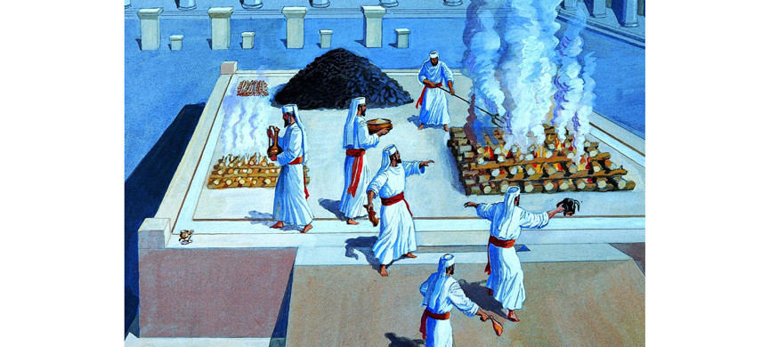В этот день главы семейств со всей страны, каждый со своим ягненком, собирались на Храмовую гору и во дворе, окружавшем жертвенник, ягнят закалывали, а их кровью священники кропили жертвенник. Обряд этот имел особое значение объединения народа воедино.