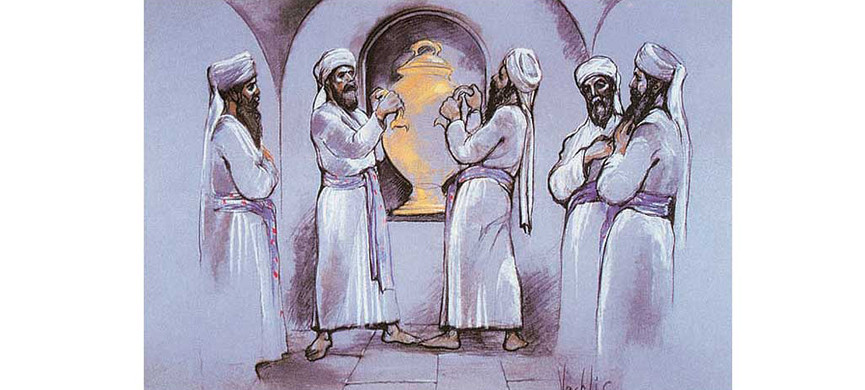 На основе этого изобретения в Храме смогли решить и еще одну проблему. Все священники в ходе служения в Храме должны были многократно за день омывать руки и ноги, причем не из какого-нибудь ведра, а из громадного умывальника с несколькими кранами, который стоял к югу от жертвенника. Но еврейский закон требует, чтобы вода для омовения была непременно свеженачерпанной каждое утро! И Бен Катин – еврейский инженер времен Второго Храма – изобрел устройство, названное в Талмуде «мухни». Это слово, конечно же, происходит от греческого «механи», как и русское слово «механизм», и означает систему колес с зубчатой передачей. При помощи этого устройства весь огромный умывальник целиком погружался вечером в подземную цистерну с водой, а утром его вытаскивали целиком – и уже полным свежей водой! Согласно описанию, представленному в талмудическом трактате Тамид, первый из священников, заходивший в Храм ещё до рассвета, должен был поднять умывальник при помощи этого устройства. А услышав скрип могучего колеса, другие священники собирались, восклицали «Час настал!» и принимались каждый за свою работу.