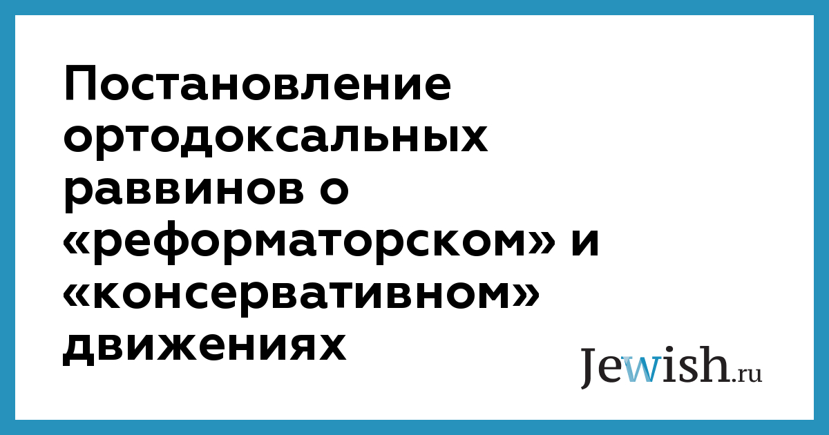 ИСТОРИЧЕСКАЯ ДЕКЛАРАЦИЯ:Союз ортодоксальных раввинов США и Канады (Агудас hа-Рабоним) заявляет: «Реформистское и консервативное (течения, —